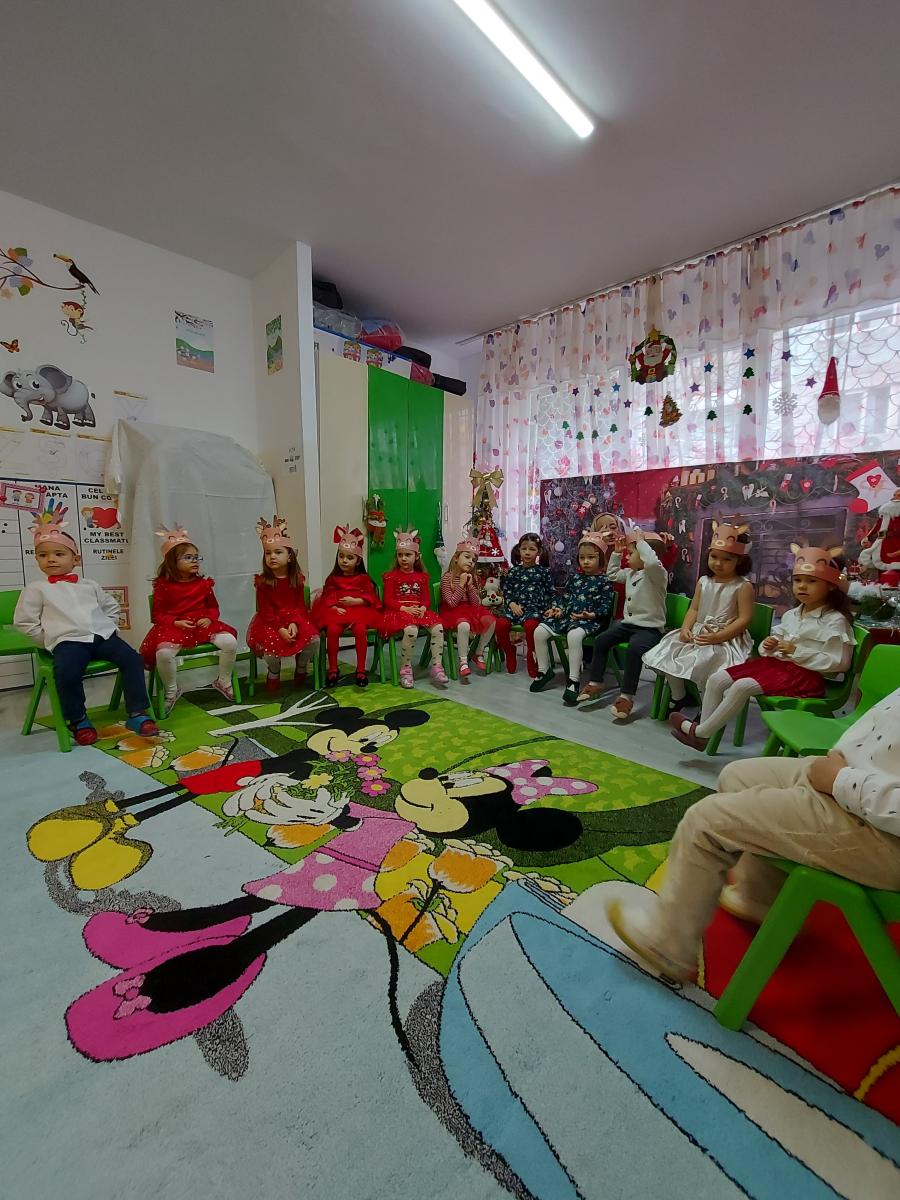 Deoarece sarbatoarea Craciunului este magica, prescolarii grupei mijlocii „Steluta de mare” coordonati de doamna profesor Salomia Valentina, intr-un decor magic, s-au pregatit sa il astepte pe Mos Craciun